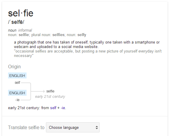 +Chris Harte : So Language nerds, we all knew that searching define:word in Google would give you a lovely definition of the word. However, if you click on the arrow at the bottom of the definition box, it also gives you a really simple etymology and an N-gram viewer graph of the word usage from the Google books Corpus.