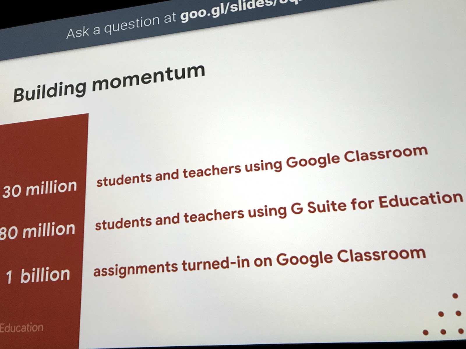The conference proper started on Wednesday, and kicked off with an overview of the Global state of Google EDU. I’m still amazed about the numbers: 30 million students and teachers using Google Classroom. 80 million students and teachers using G Suite for Education and 1 billion assignments turned-in on Google Classroom.